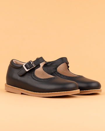 Sapatos em pele natural na cor azul escuro. Apertam e ajustam na lateral com fivela. Têm reforço no calcanhar e forro em pele para garantir a correcta transpiração do pé. Sola de borracha flexível e anti-derrapante. Práticos e confortáveis em qualquer ocasião.