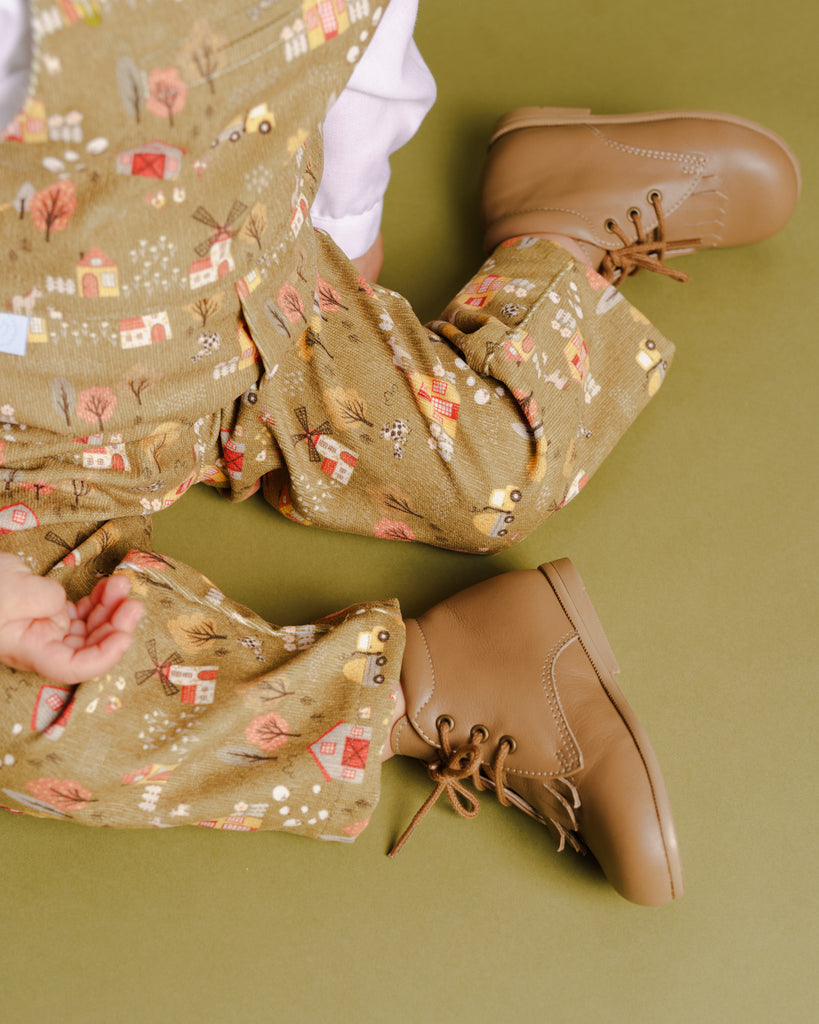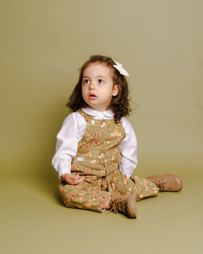 Calções tirolês sarjinha "pêssego"/ verde escuro