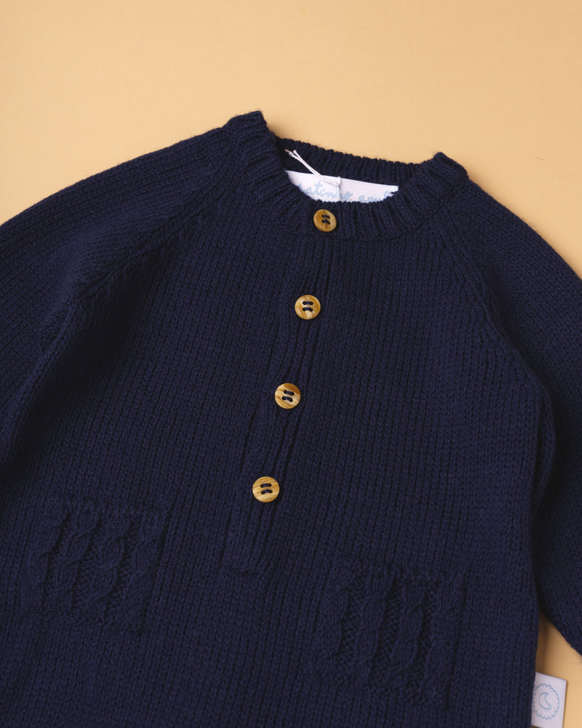 Fatinho tricot bolsinhos/ bege + azul escuro