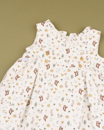 Saia de corpo em vaiela do tema "os mochinhos". Aperta nas costas com fecho invisível e é forrada em algodão orgânico. Muito versátil para esta estação pode ser usada com as nossas blusinhas ou bodies e completada com os tricots nos vários tons.
