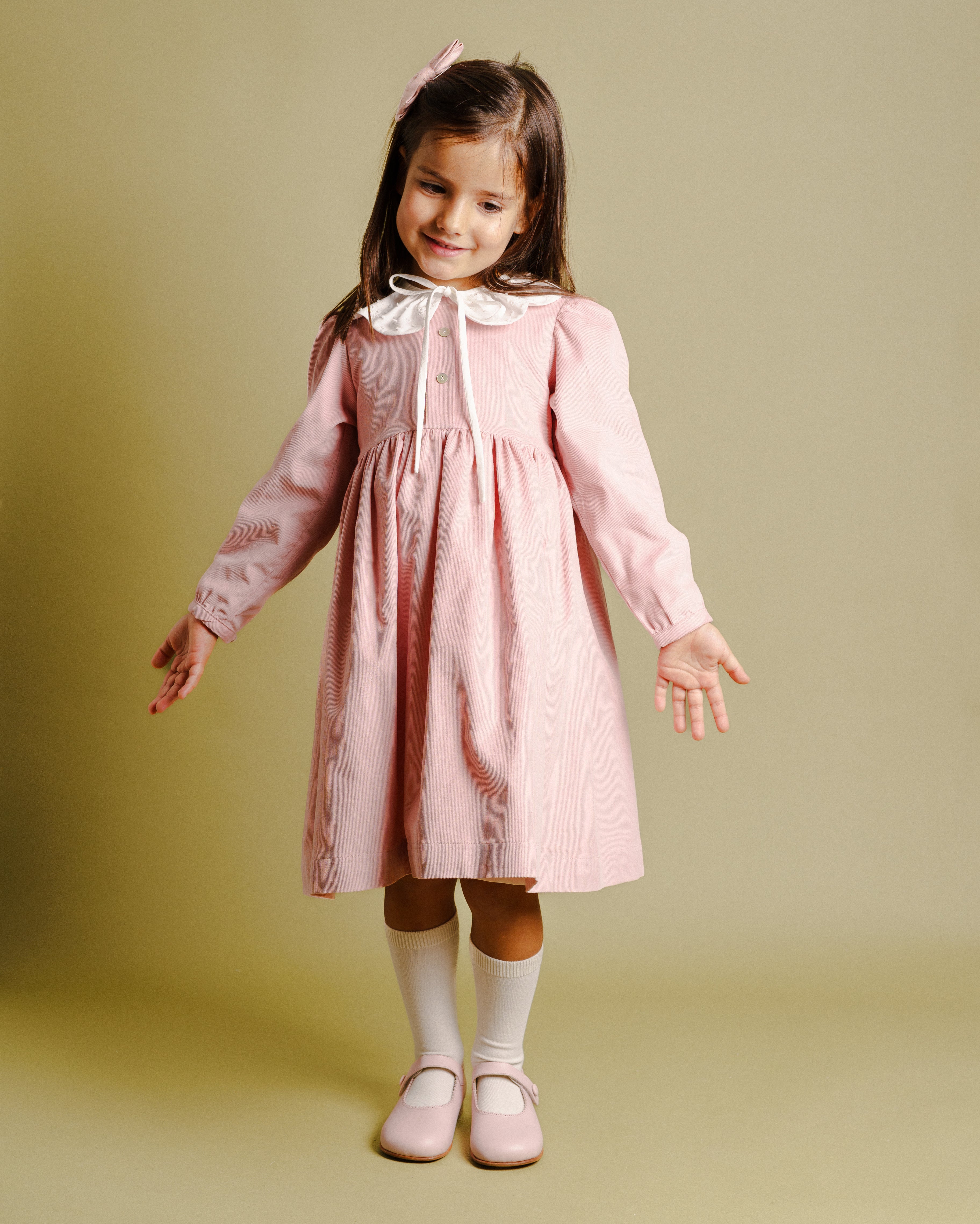 Vestido veludo cotelé/ rosa velho