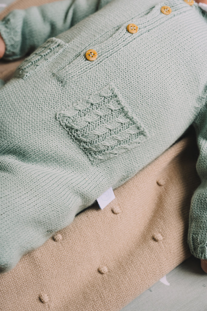 Fatinho tricot bolsinhos / aloé vera + 2 cores